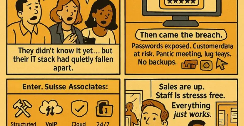 📍May 2025 Success Highlight – Acme Supermarket When James from Acme called us, his store was dealing with a situation many retailers know too well:📶 Slow Wi-Fi in key aisles💻 Inconsistent scanner connections🚚 Tech vendors leaving messes behind Our team handled it the Suisse way:✅ Installed upgraded routers + access points✅ Reconfigured bandwidth for high-traffic […]